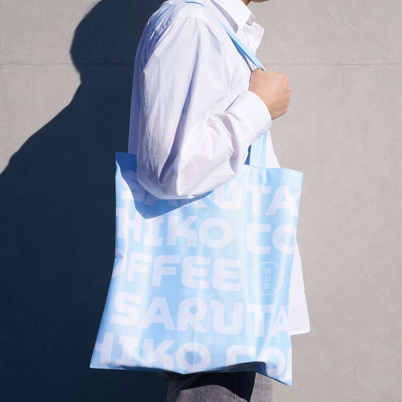 猿田彦珈琲の英字ロゴを大胆にあしらったA4サイズも楽々に入るトートバッグ。