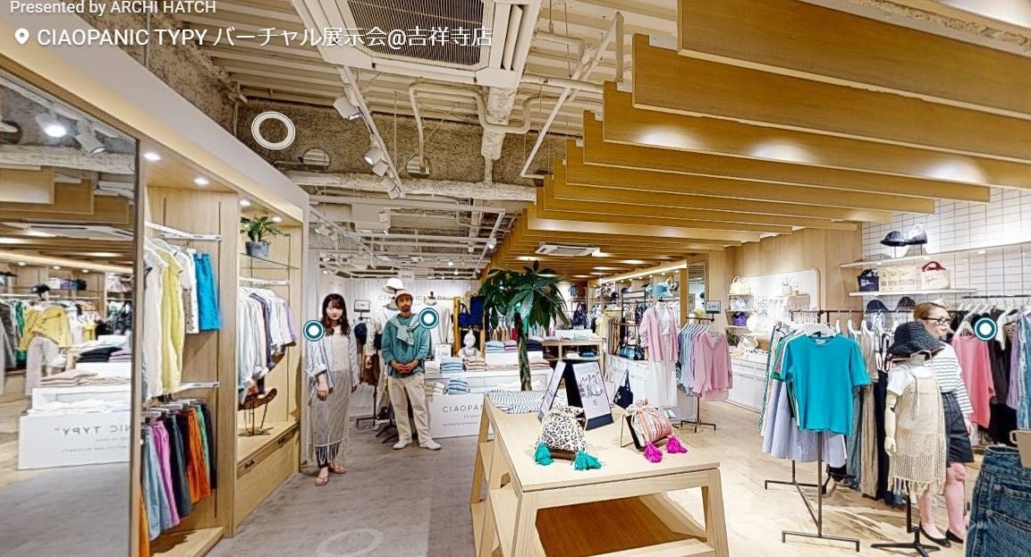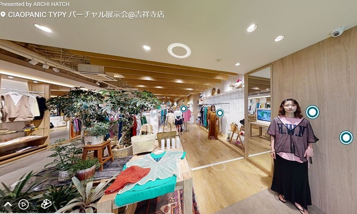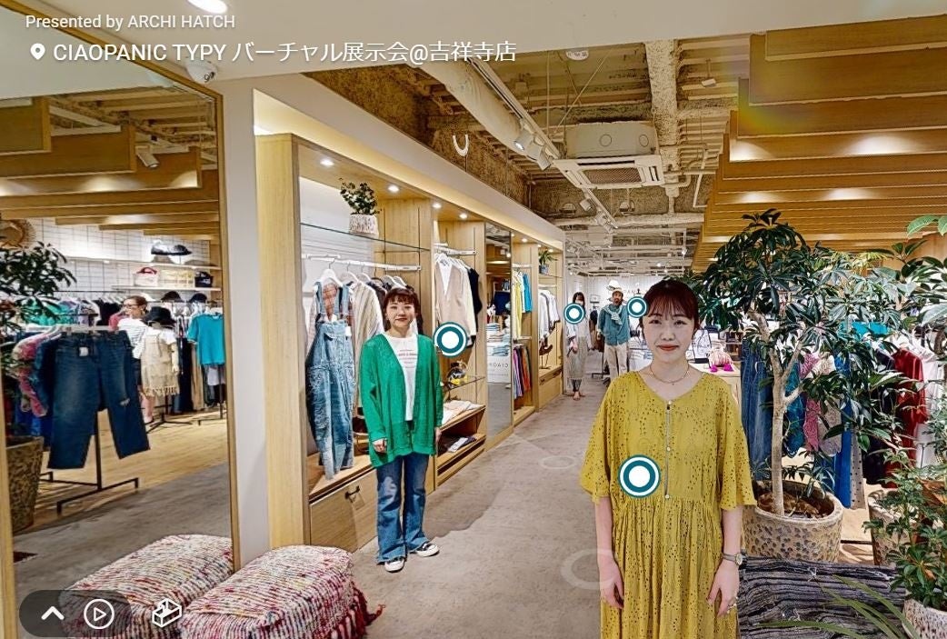 CIAOPANIC TYPYでは2019年より実店舗での顧客向け展示会を実施していましたが、今回初めて豊島とARCHI HATCHが提供する「デジタル展示会サービス」を導入いただきました。サービスの導入により、移動等によって生じる新型コロナウイルス感染のリスクなく、日本全国の顧客にデジタル上で商品の閲覧や購入が可能になる場を提供することができ、遠方に住んでいた方々に対しても、旗艦店の様子を鮮明に届けることができます。また、展示会のURLをSNSでも発信できるという利点に加え、さらには、本サービスの“商品画像データと人物画像データを一緒に画面上に登場させることが可能”という特徴を活用いただくことで、全国のCIAOPANIC TYPYのトップ販売員をバーチャル上に登場させ、着用イメージやおすすめのコーディネートを画面上で紹介、気に入った場合はネット上ですぐに購入できることが可能となり、顧客の購買意欲の向上や、売上・認知の拡大にも繋がることが期待されます。