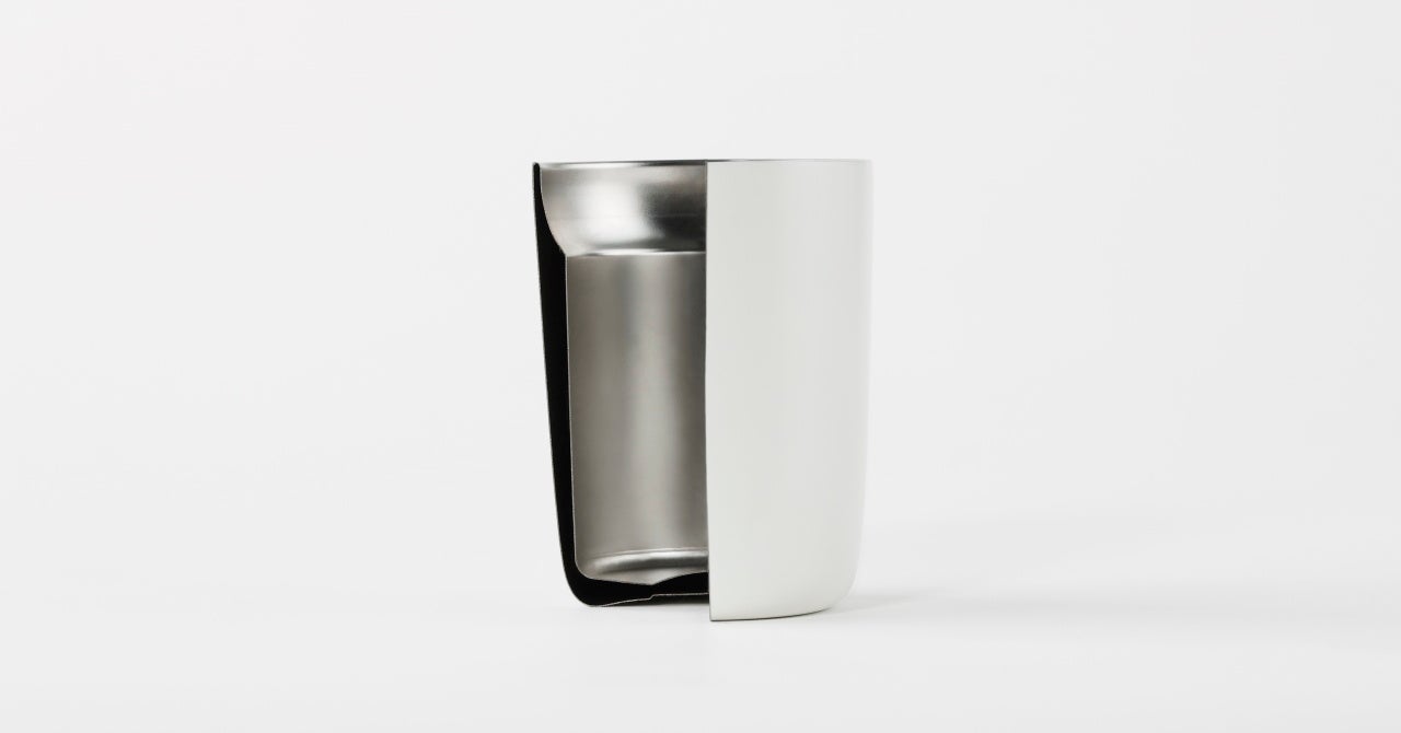 冷たさ・温かさを保つ真空二層構造で、冷たい缶飲料や飲みものを入れても結露することがありません。缶を入れて飲む時にはフチが口に当たらず、直接飲む時には凸凹のないなめらかなフチ形状で口当たりがよく、それぞれの使い方で飲みものをより一層楽しめます。収納や持ち運びがしやすいスタッキング構造です。