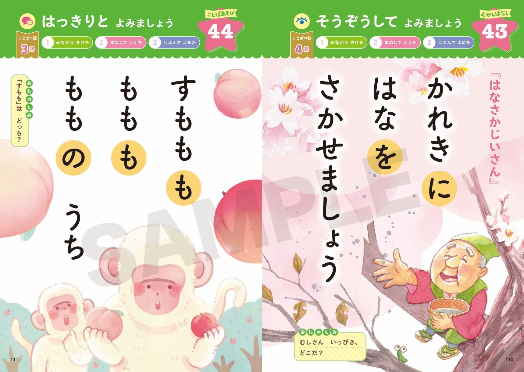 本書は1才から脳科学音読トレーニングを実践できるファースト音読ブック。幼児期の発達段階に合わせ、ことばのセレクト、挿絵、文字の大きさや太さなど、細部にまでこだわりました。