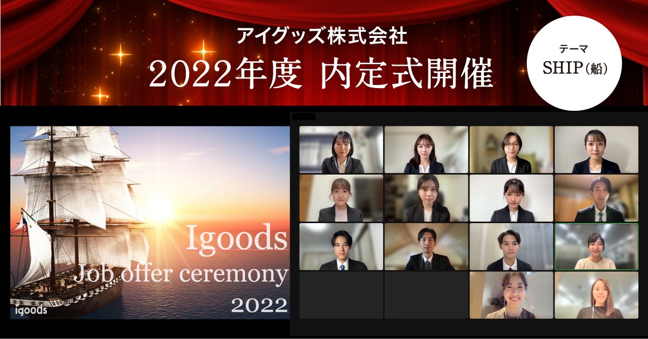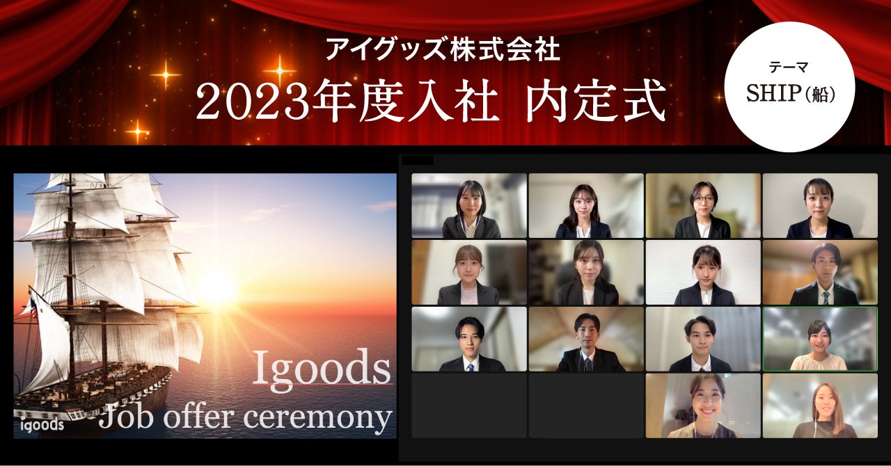オリジナルグッズを製作するアイグッズ株式会社(本社:東京都渋谷区)は、2022年10月3日(月)「2023年度入社内定式」をオンラインにて開催し、内定者11名(男性4名、女性7名)が参加しました。今年度の内定式は、「SHIP(船)」をテーマに、チーム対抗の会社クイズや、自分たちの旅路の地図を描くビジョンシートの作成を実施。内定者としての自覚が強く醸成される参加型内定式となりました。
