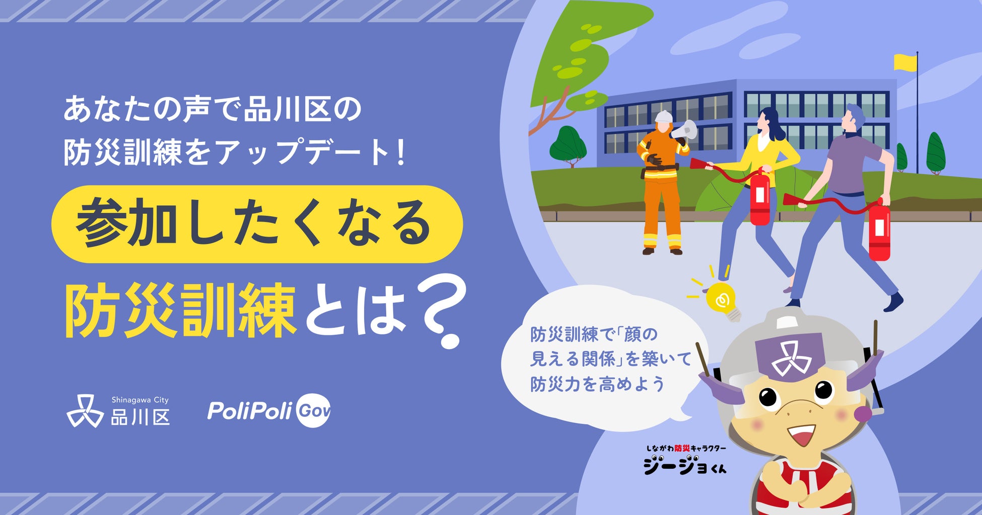 品川区が実施する「防災訓練アイデア」に関する意見募集に『PoliPoli Gov』が導入されることをお知らせします。また本件は、東京都23区での初の意見募集となります。