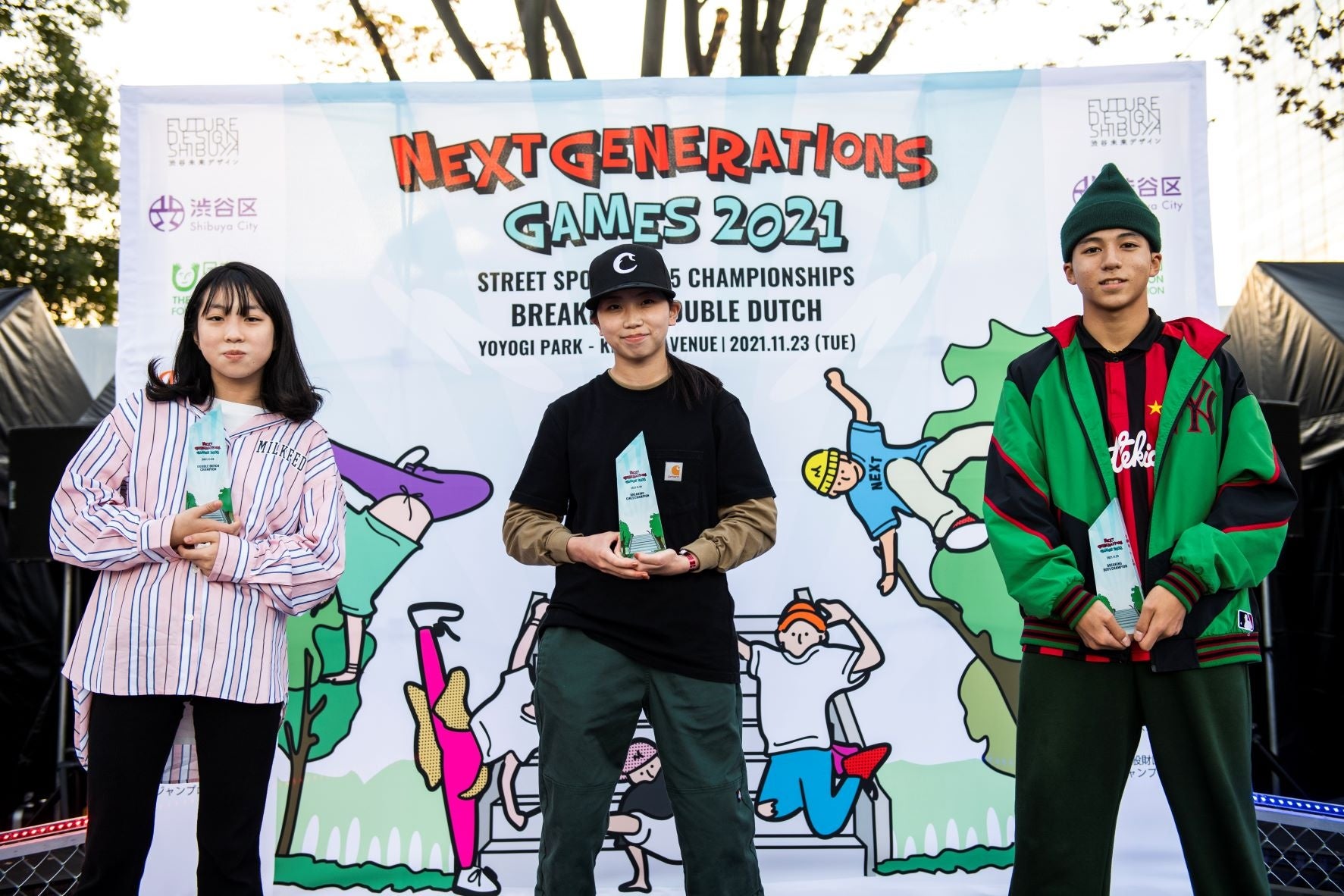 代々木公園 ケヤキ並木の真ん中に特設されたイベントエリアで開催され、新型コロナウイルス感染症感染予防対策が実施される中で、のべ1,000人の来場者と合計20,700人のオンライン視聴者が若き才能のぶつかり合いを応援しました。ブレイキン(Boys)RA1ON、ブレイキン(Girls)YUMETO、ダブルダッチ(Mix)Yu-Yuが各種目で優勝。RA1ONは、2020年度に続き2連覇となる圧巻のパフォーマンスを披露。YUMETOは2020年度の準優勝の結果をバネに、見事優勝を勝ち取りました。Yu-Yuは2021年度、全日本大会であるダブルダッチデライト アドバンスド部門をチームでも優勝し、個人でも優勝を飾る結果となりました。