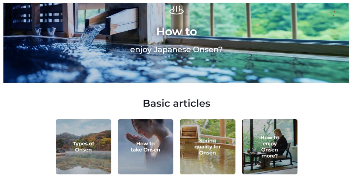 公衆浴場などの日本の温泉文化になじみがない外国人でも安心して温泉をご利用いただけるよう、温泉の楽しみ方やマナーをはじめ、温泉にまつわる基本情報を記事としてまとめています。