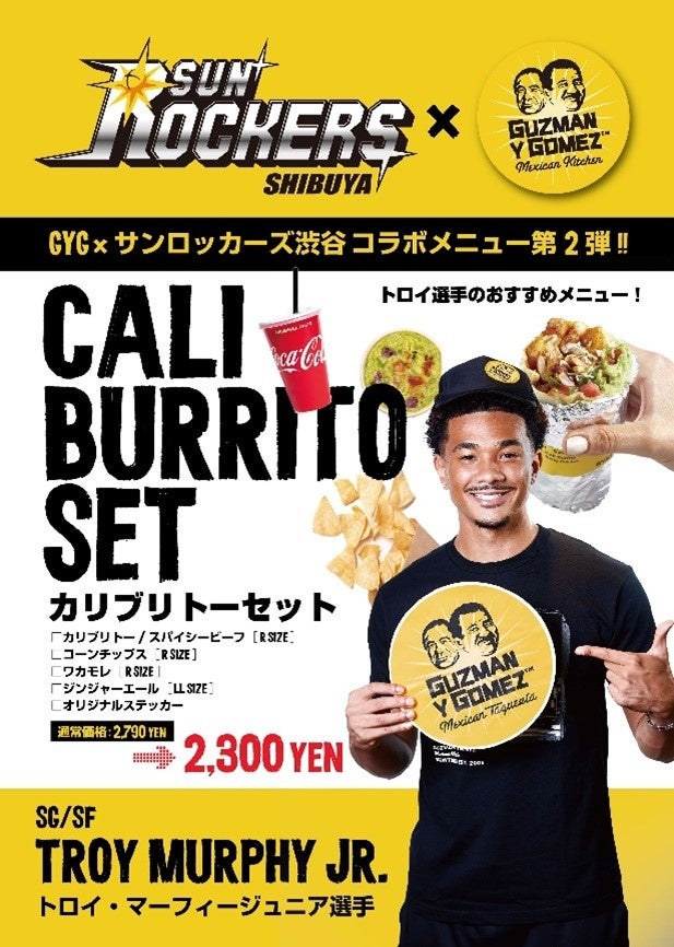 10月1日(火)より、ファストカジュアルスタイルのメキシカンキッチンであるGuzman y Gomez(以下GYG 読み仮名:ジーワイジー)とタッグを組み、サンロッカーズ渋谷の選手コラボセットの販売を開始し、サンロッカーズ渋谷のホームゲーム開催日における割引キャンペーンを実施いたします。