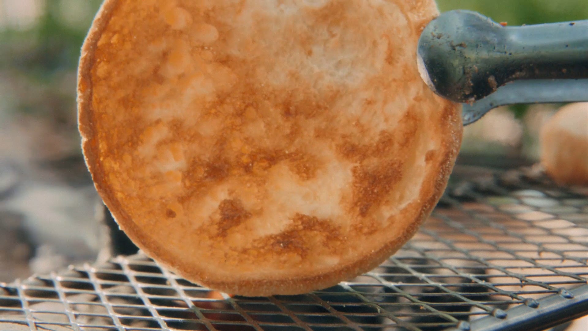 こんがり焼くことでより香ばしい風味と食感が楽しめるイングリッシュマフィンにカリカリに焼けた食材をはさんで、大自然の中で豪快にかぶりつく様子を通じて五感で食べる豊かな食事の時間を表現しています。