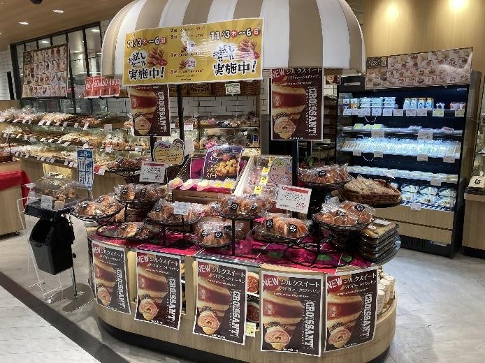 発売初日には試食販売を行い、その場で実際にお客さまにお試しいただき、多くの方からご好評いただいております。ぜひ、今の季節におすすめの「シルクスイートのバイカラークロワッサン」をお試しください。