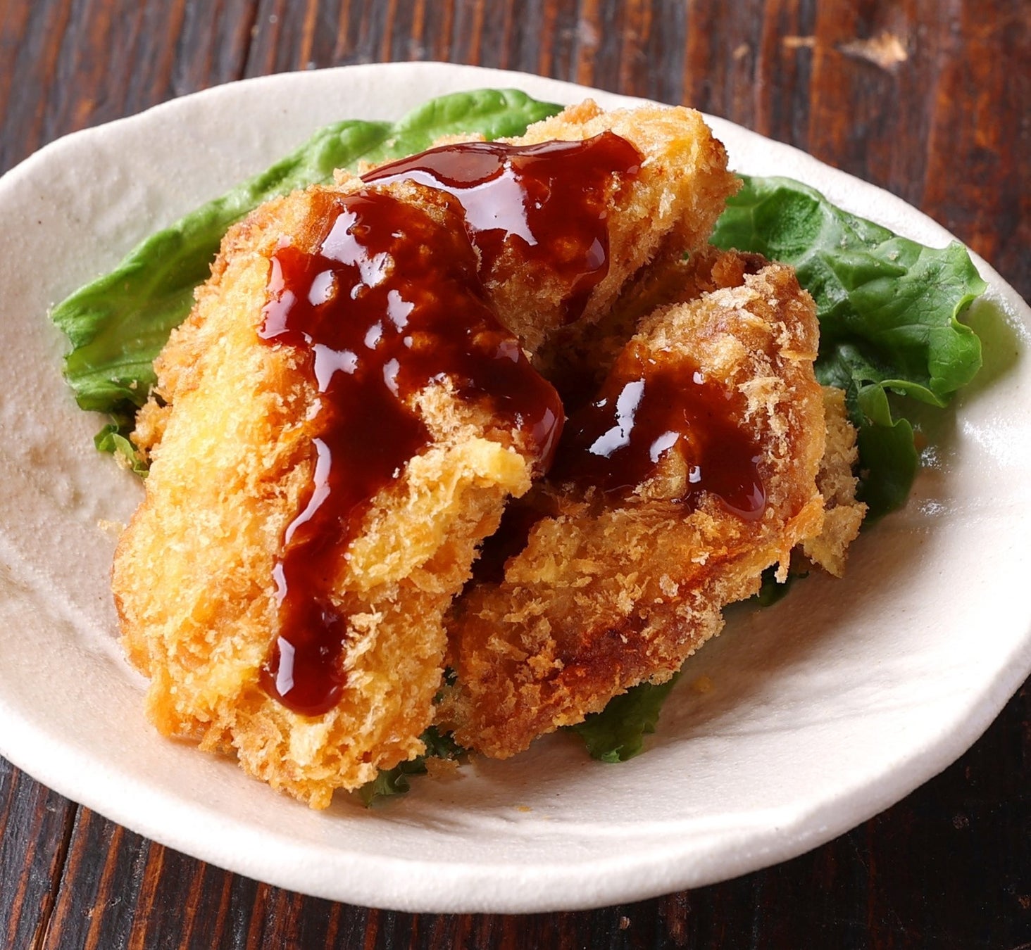 まぐろの希少部位である旨味のある頭肉を使用したサクッとジューシーなカツです。お酒とも相性抜群の新しい一品料理です。