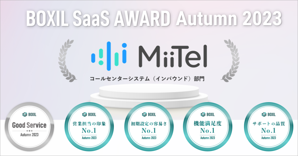 【5期連続受賞】音声解析AI電話「MiiTel」、「BOXIL SaaS AWARD Autumn 2023」コールセンターシステム(インバウンド)部門で「Good Service」に選出