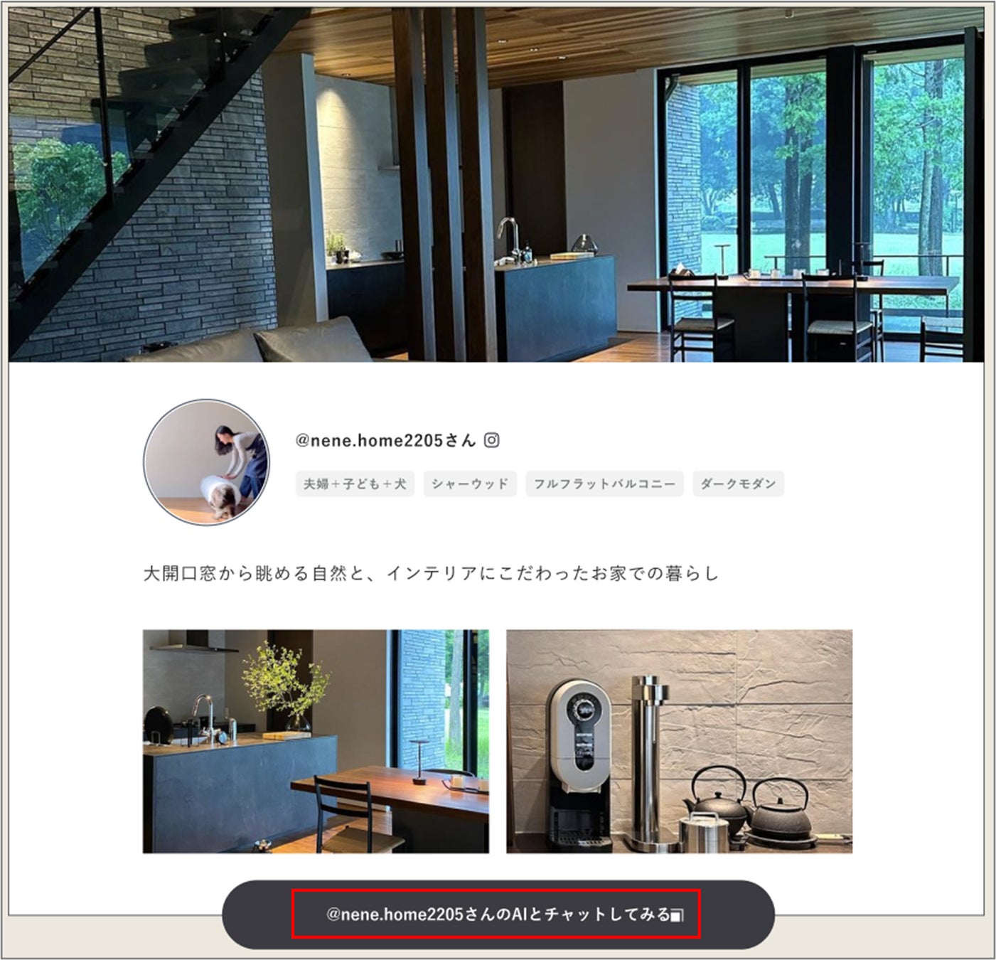 に、Instagramで住まいづくりの進め方やこだわりのインテリア、ライフスタイルを発信している3