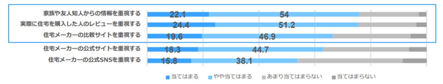 情報源として、住宅メーカーからの情報よりも第三者からの口コミや情報を重視する傾向があること