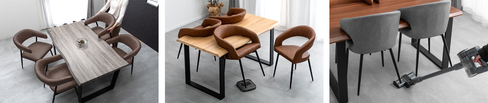 ロボット掃除機に対応したヴィンテージモダンスタイルのダイニングチェア3種類の詳細は以下にて説明いたします。