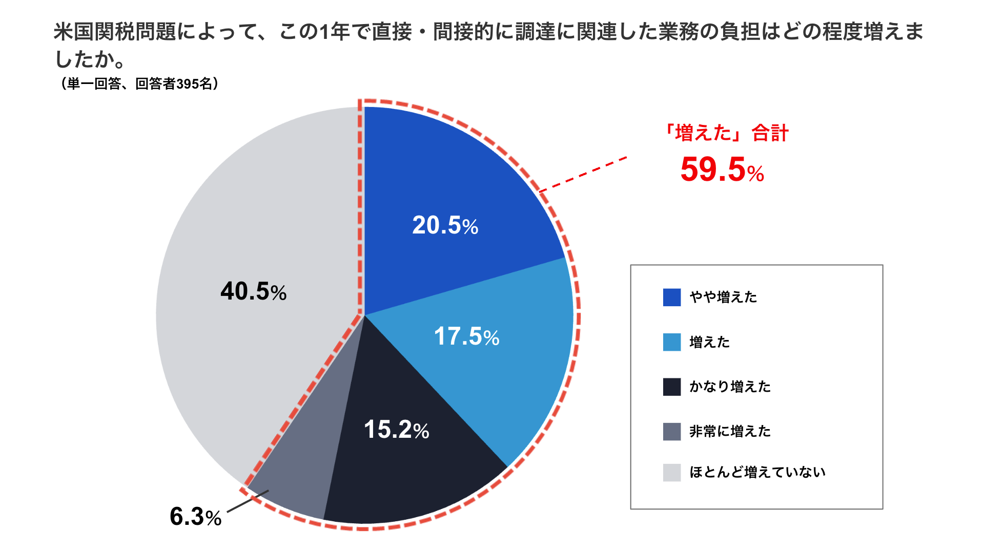 ・管理職の約6割が米国関税問題によって調達に関連した業務の負担増加を実感。「非常に増えた」「かなり増えた」の合計は2割強にのぼりました。