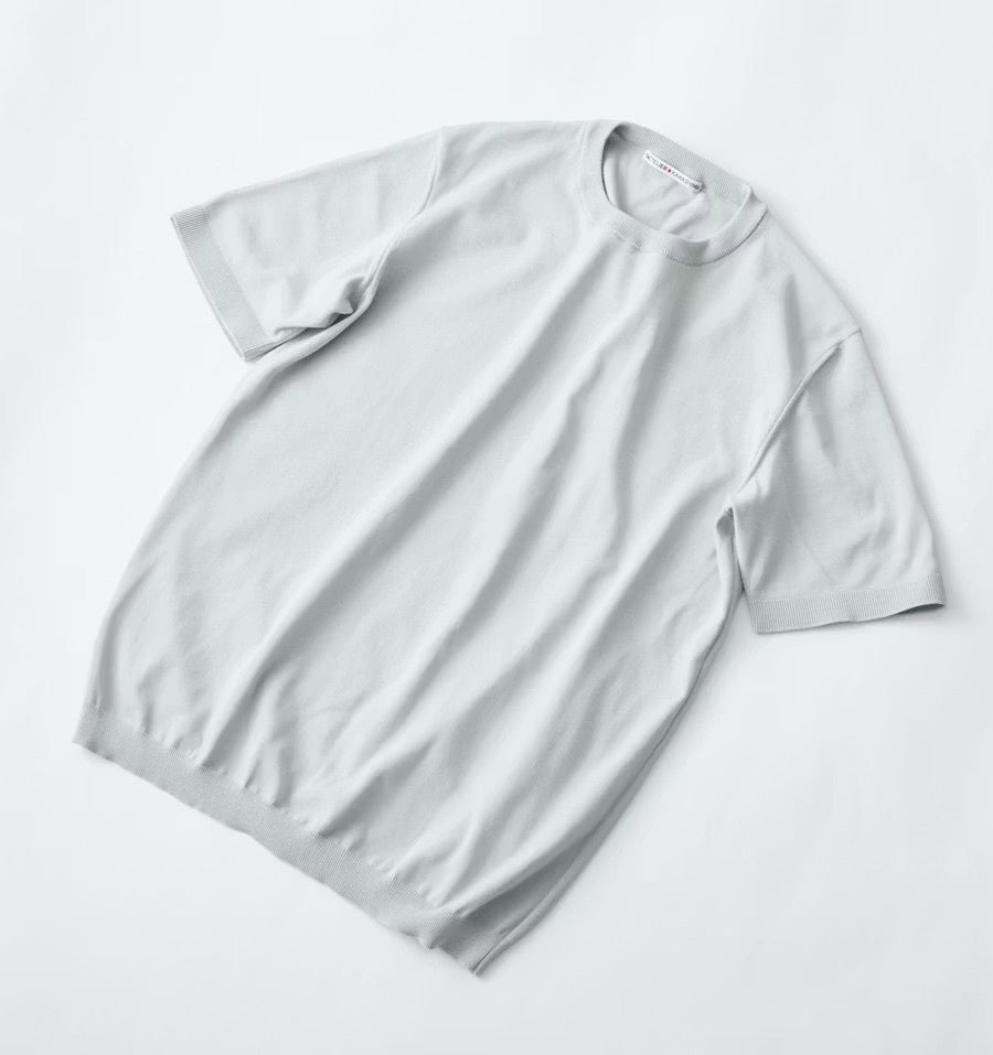 新潟生まれの“出来過ぎ”なニットTシャツ登場。夏をスマートに彩るに新色”ブルーグレー”が仲間入り