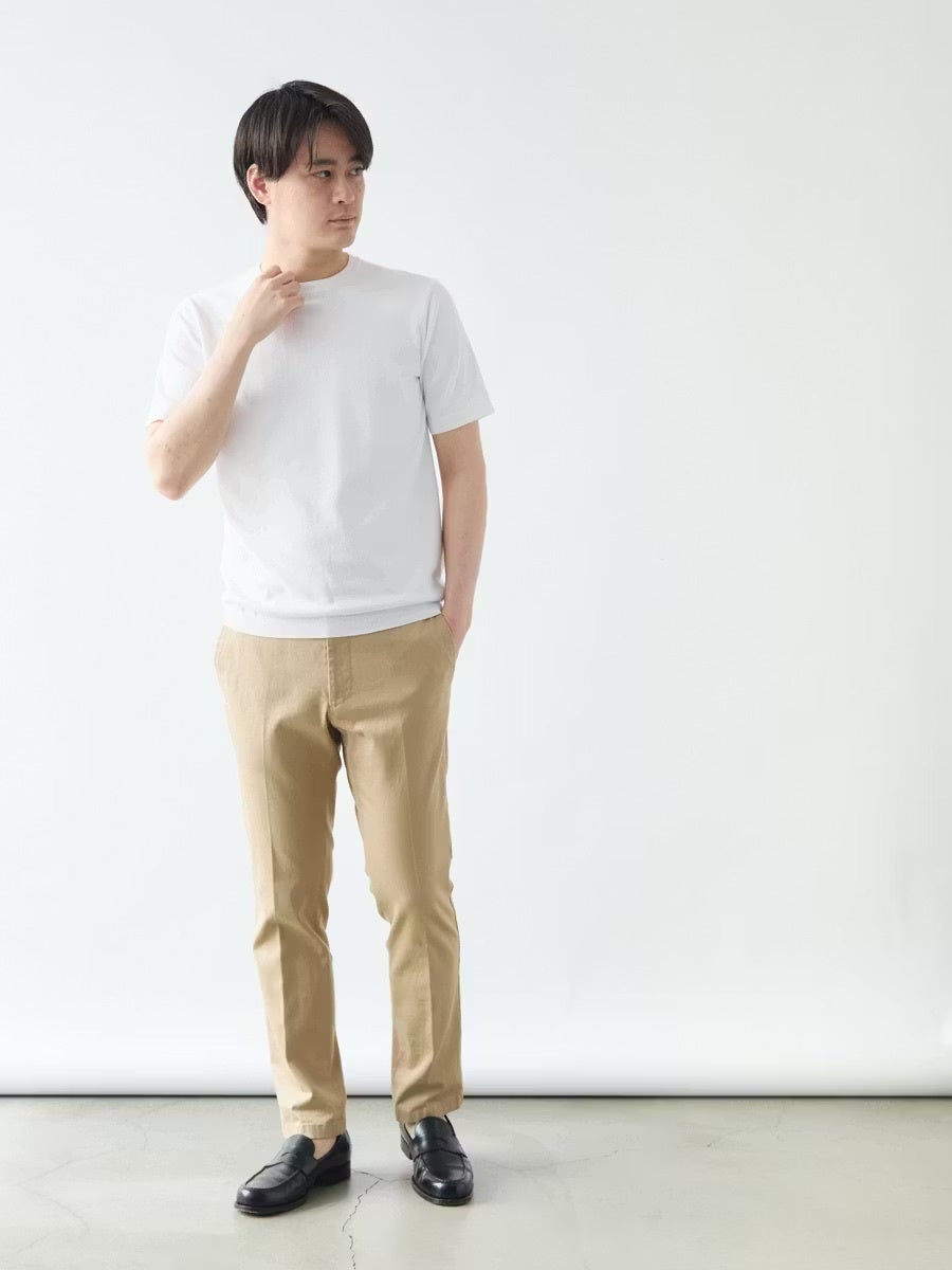 カットソーのTシャツとニットのTシャツの違いも含めて、このニットTシャツを通して感じていただければと思います。