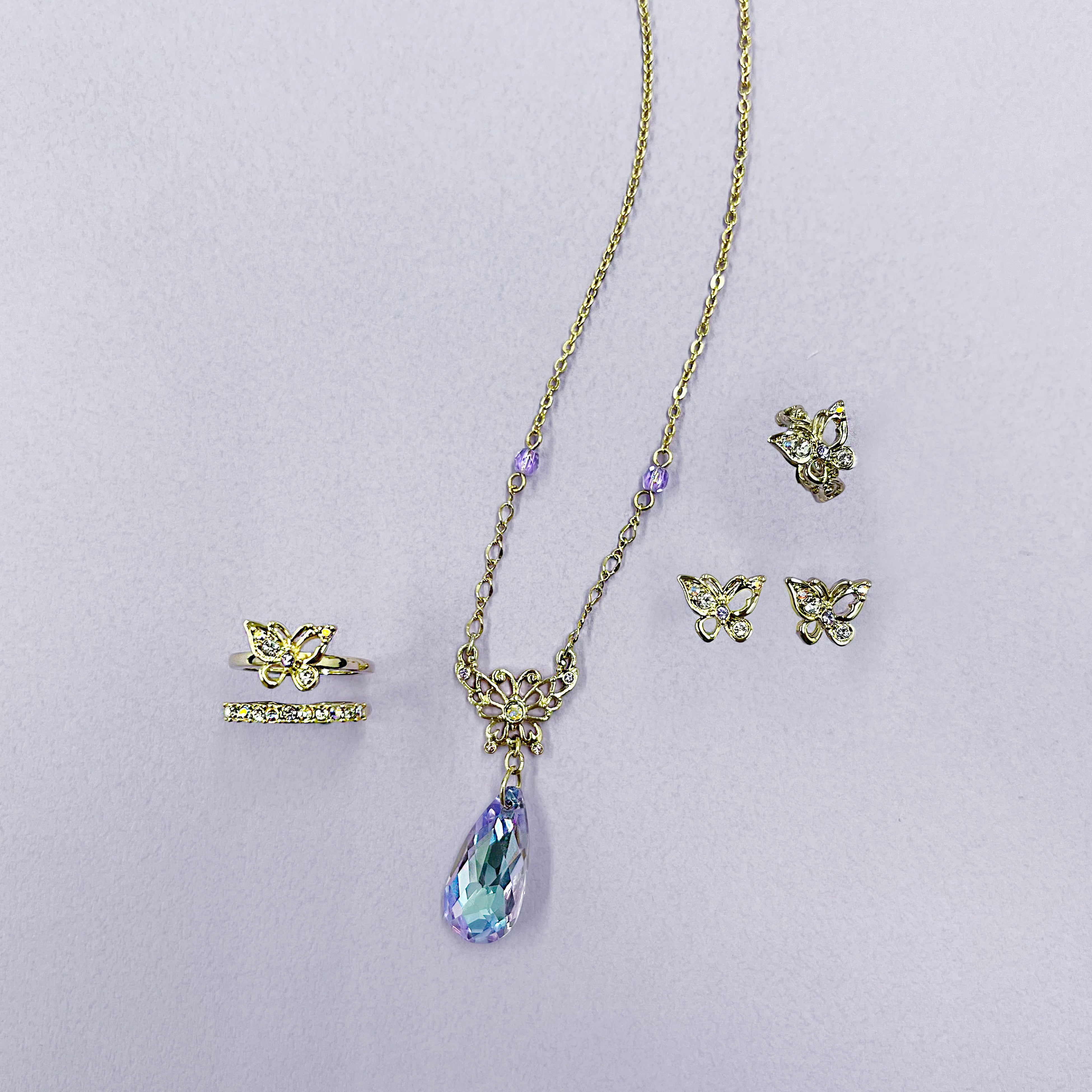 相反するテイストのミックスが魅力なANNA SUIのアクセサリーより、夏らしいカットガラスを使った蝶モチーフアクセサリーを発売。