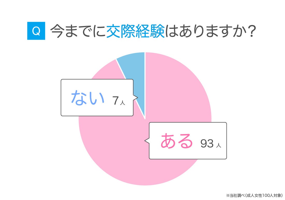 1.成人女性100人のうち、交際経験が「ない」は7人(7%)