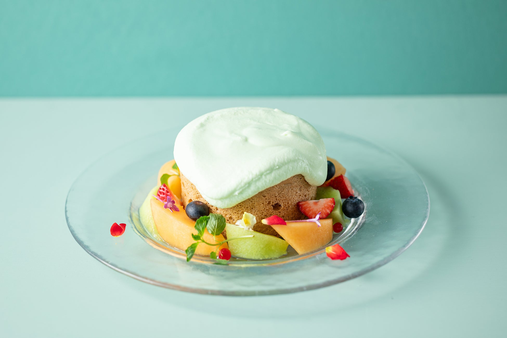 ほうじ茶の香ばしさが楽しめる“ほうじ茶のシフォンケーキ とろけるメロンクリーム”は、ふわふわに焼きあげたシフォンケーキの中央からメロンベースのまろやかなマスカルポーネクリームがトロリと流れ出すサプライズを提供時に演出します。