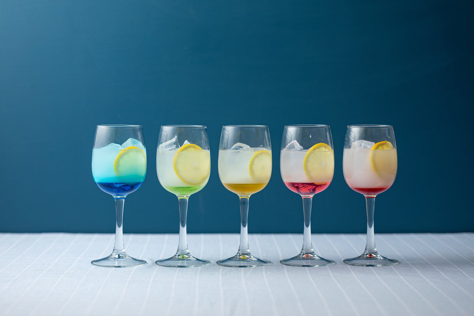 ブルー、グリーン、イエロー、ピンク、レッド、カラフルな 5 色の “推し”カラーモクテルをご用意しました。 ご自身のお好きな“色”、“推し色”のモクテルで乾杯すれば気分も上がるのではないでしょうか。