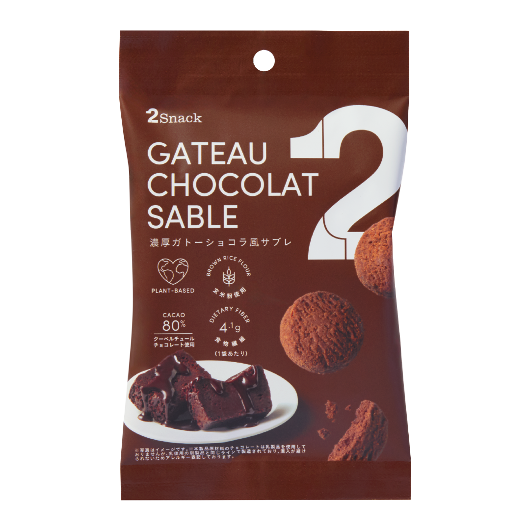 2foods の店舗で人気の「生食感の濃厚ガトーショコラ」をモチーフに開発。カカオ 80%のクーベルチュールチョコレートを使用した濃厚なカカオ香るサブレです。