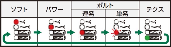 制御を改良したことで、低速でも止まらずに打撃ができます。また、ビット振れを軽減したため、カムアウトしにくく、片手操作でもビスが倒れにくいです。さらに、最低回転数を低くしトリガの遊び量を減らした他、トリガの形状を変更しより繊細な作業をしやすくし、スイッチの操作性を向上しています。