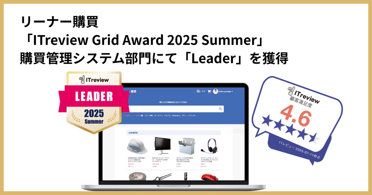 株式会社Leaner Technologies(本社:東京都品川区、代表取締役:大平裕介、以下リーナー)が提供する購買管理システム「リーナー購買」が、アイティクラウド株式会社が運営する法人向けIT製品レビューサイト「ITreview」において、「ITreview Grid Award 2025 Summer」購買管理システム部門にて「Leader」を獲得したことをお知らせします。