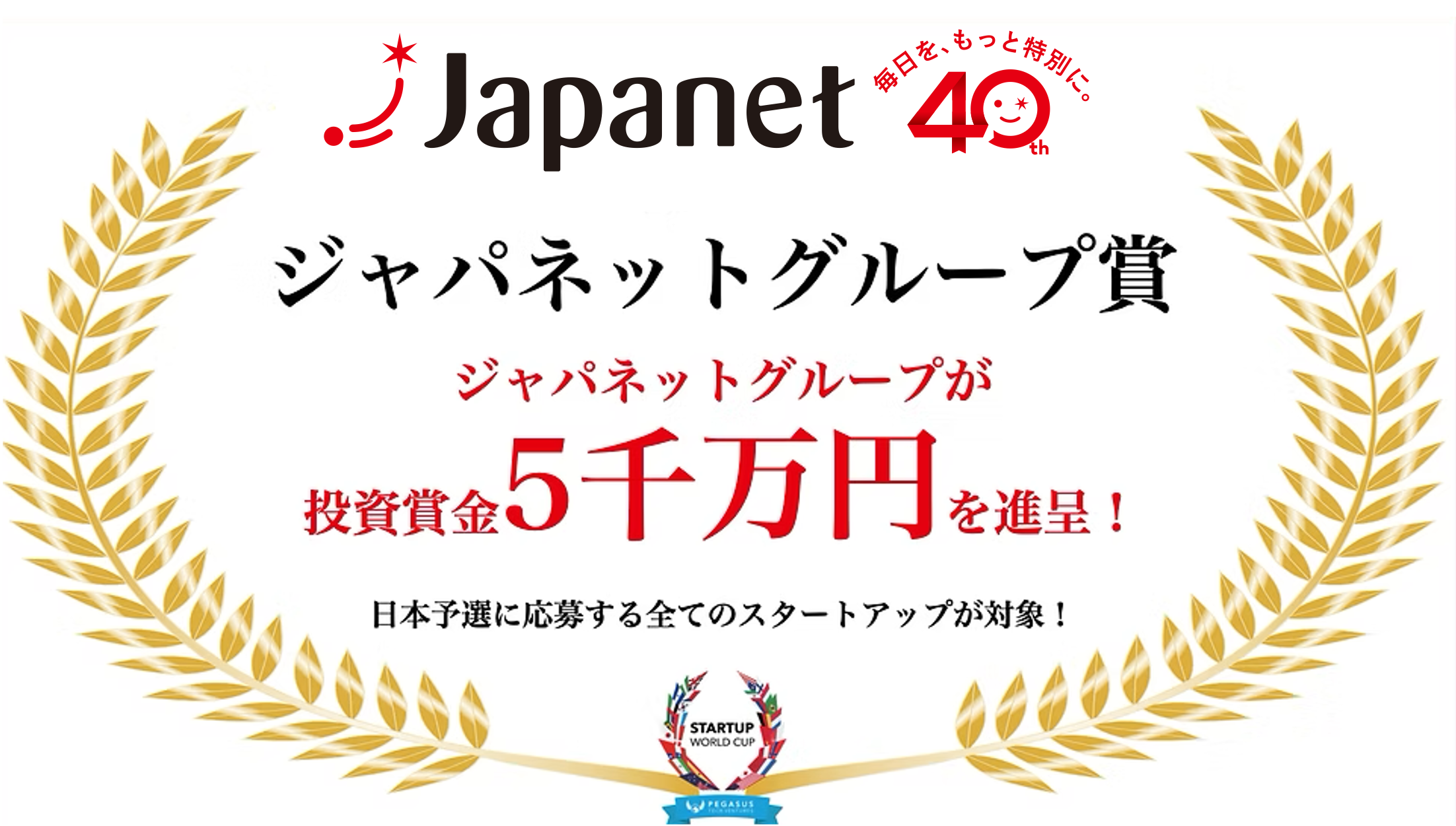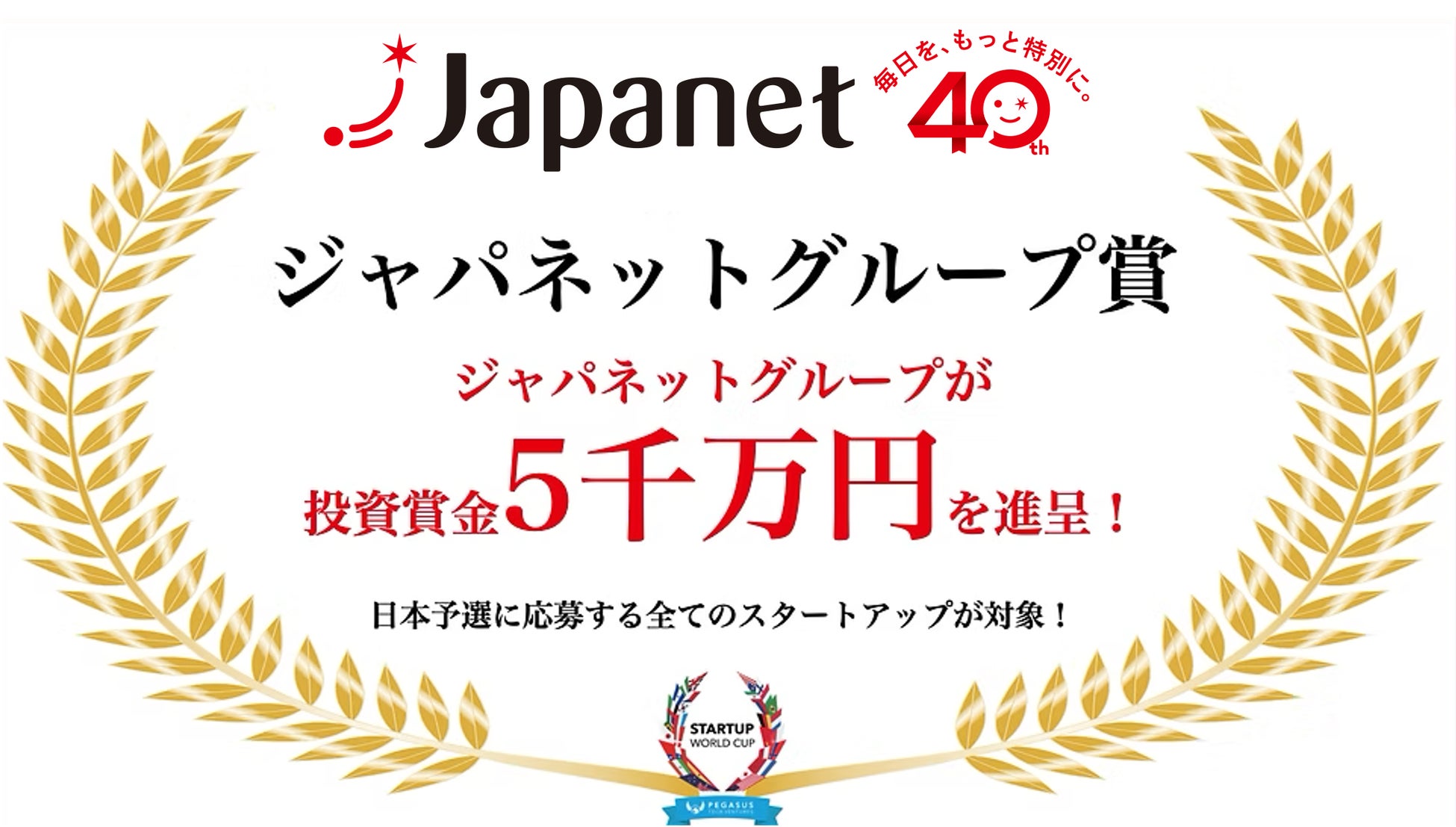 ペガサス・テック・ベンチャーズ(本社:米国カリフォルニア州サンノゼ、代表:アニス・ウッザマン)は、「スタートアップワールドカップ2026」日本予選において、大手事業会社各社のご協力のもと、特別賞を提供いたします。特別賞には、総額1億5,000万円の投資賞金と、世界決勝戦参加時に利用可能な東京〜サンフランシスコ間の往復航空券が含まれます。