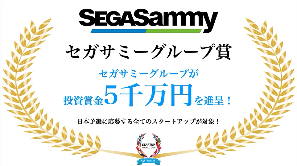 総合エンタテインメント大手のセガサミーホールディングス株式会社(本社:東京都品川区、代表取締役社長グループCEO:里見治紀、以下セガサミー)より、セガサミーが選出するスタートアップに対して「セガサミーグループ賞」として投資賞金5千万円を進呈。