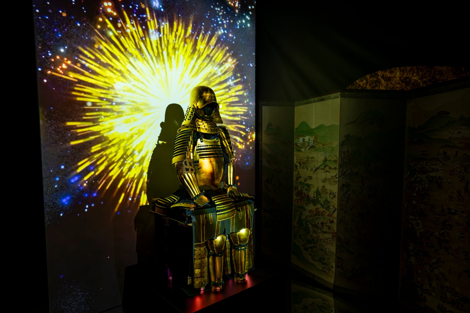徳川家康が桶狭間の戦いの前哨戦で着用されていたと伝わる甲冑・金陀美具足(きんだみぐそく)のレプリカに、岡崎市や徳川家康をイメージしたプロジェクションマッピング映像を投影。