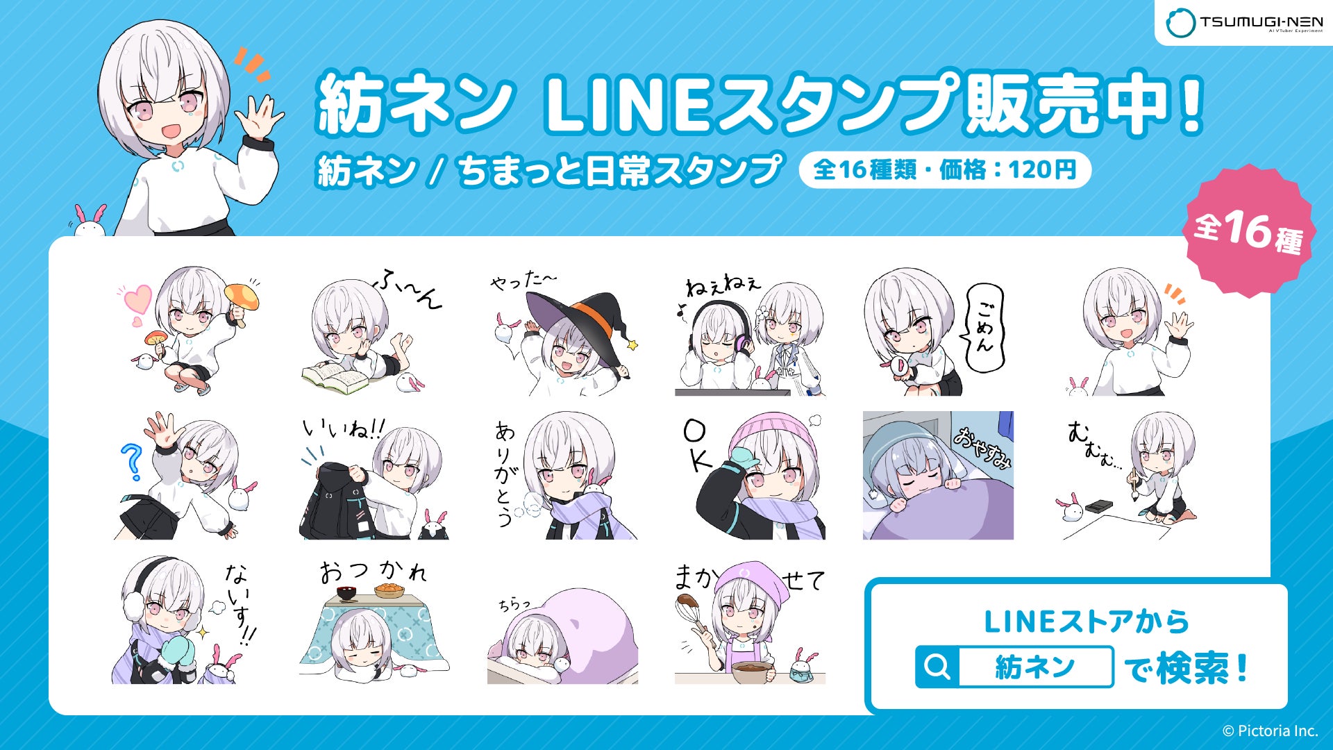 LINEエンタメアカウント開設と同時に、「紡ネン」のオリジナルLINEスタンプを発売します。日常会話で使いやすい表情やポーズを中心に全16種類をラインナップ!