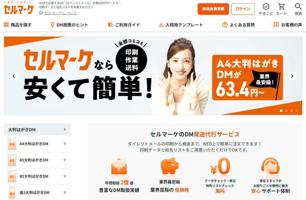 主な機能: DMの印刷・宛名印字・発送までのオンライン注文