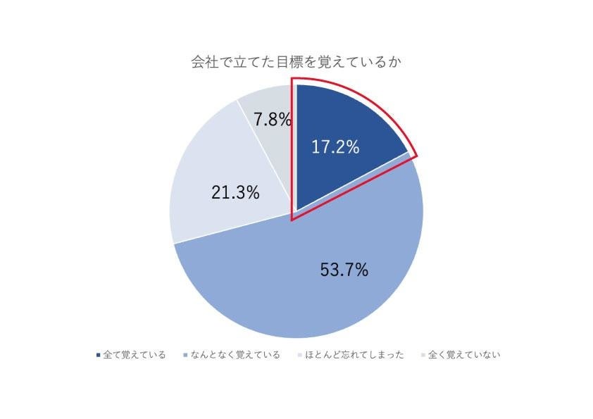 先ほどの現状の一方で、対象である部下の中で目標をはっきりと覚えているの僅か17%程、ほとんどが聞かれても答えることができないという結果が出ています。