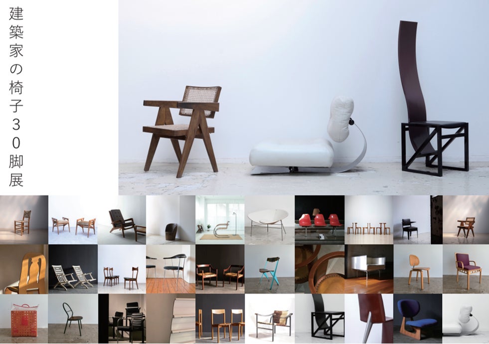 今回は約1mの背もたれが特徴的な、世界的建築家、黒川紀章のEDOシリーズの椅子や、菊竹清訓建築設計事務所時代の長谷川逸子のFRPベンチ、長大作のジャパニーズモダンな低座椅子、岸和郎のAQUA CUBEなど、日本を代表する建築家4名4脚の椅子のほか、日本でも人気の高いピエールジャンヌレやシャルロット・ペリアンの椅子や、日本には出回ることがほとんどないBread Museum仕様のリナ・ボ・バルディの「キリンの椅子」や、エンゾ・マリの折りたためるボックスチェアなど、時代を超えて永く愛されるデザインの椅子30脚をセレクトしました。