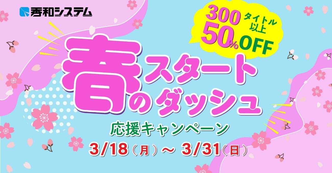 株式会社秀和システム(東京都・代表取締役会長兼社長 上田智一)は、2024年3月18日から3月31日まで、Kindleストアをはじめとした11書店にて、人気の電子書籍300点以上が50%OFFとなる「秀和システム 春のスタートダッシュ応援キャンペーン」を行います。