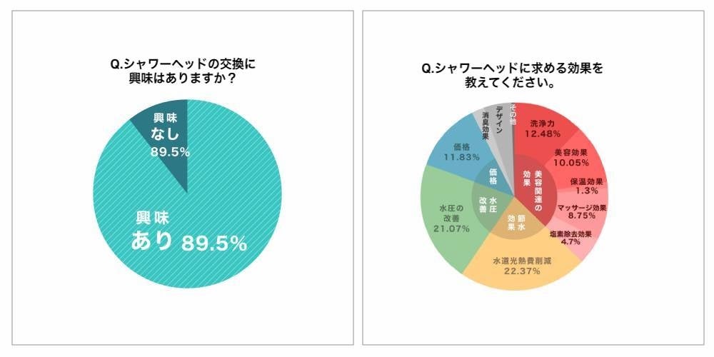 求めるのは美容関連の効果が1位で37.3%、節水効果が22,4%、水圧改善が21%と千差万別です。