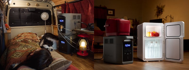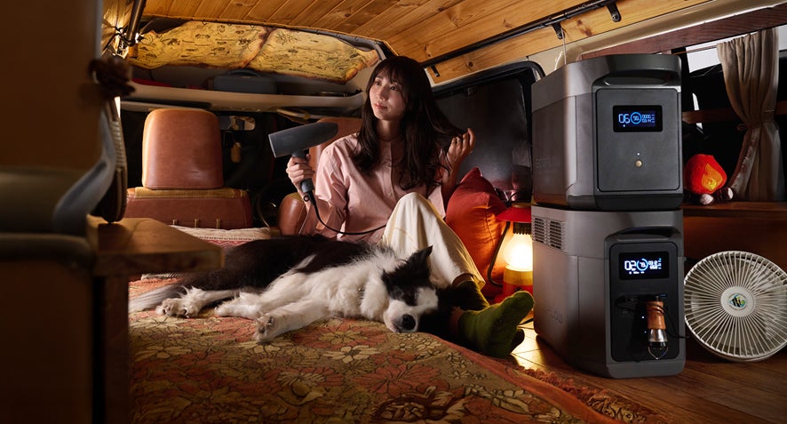 「DELTA 2 Max S」 は、1台で約2日間の車中泊にちょうどいい2,048Whの大容量です。また、ニーズに合わせてエクストラバッテリーを使用することで、最大6,144Wh の大容量で十分な電力を確保することもでき、大人数や長期間の車中泊はもちろん、車中泊避難、自宅での防災・停電時用バックアップとしても活躍できる製品となっています。