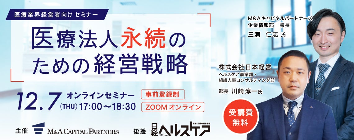【12月7日開催オンラインセミナー】医療法人永続のための経営戦略