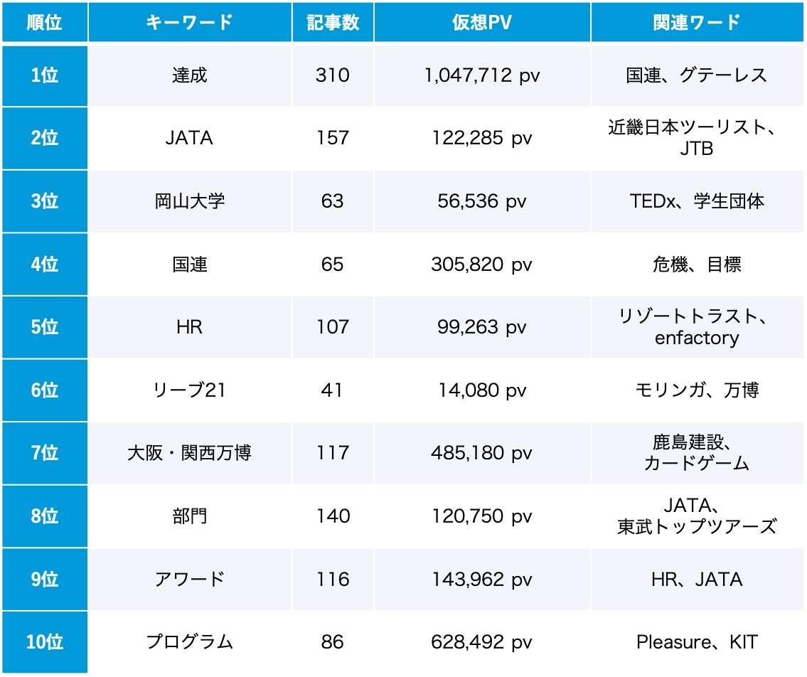 2位の「JATA」は一般社団法人日本旅行業協会の略称です。同協会による第3回「JATA SDGsアワード」が発表されたことで多くの関連記事が出ています。