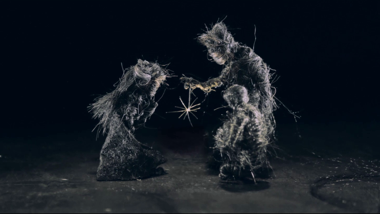 長く伸びた髪には長年連れ添った大切な人とのストーリーが詰まっているのではと着想し、切り落とされる古い毛を素材にした「髪のパペットアニメーション」という手法に挑戦しました。