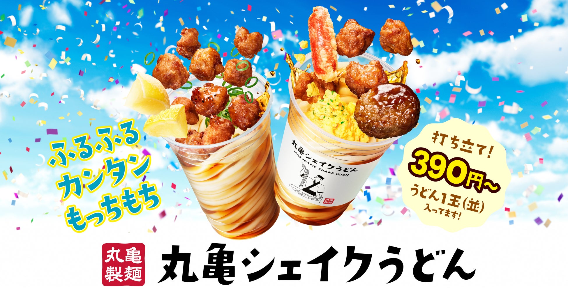 打ち立てうどんをいつでもどこでも手軽に!ふるふる、カンタン、もっちもち! 発売2年目突入!「丸亀シェイクうどん」の季節がやってきた!新作『よくばりシェイクうどん』は、子どもたちの声から商品化!