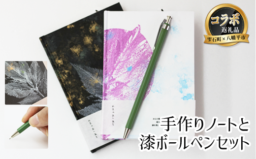 八幡平市からは普段使いしやすい作品を世界に向けて発信している「kinoshiru」の漆を使用したノック式のボールペン。雫石町からは一冊ずつ絵が書かれた原画をそのまま表紙にしている一点ものである「すずめや」のノートの2冊セット。使い込めば使い込むほどものとしての良さが引き立つセットです。