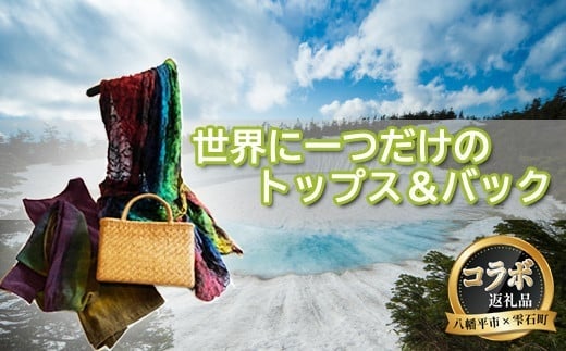 八幡平市からは、八幡平に噴出する地熱蒸気を利用した地熱染めで染めた世界で一つだけのショールとトップス。雫石町からは、日本最高峰の編み技術「持ち手」と「縁かがり」を用いて熟練した職人の精巧な技術によって編み上げられた天然葡萄皮細工のバック。これらを完全受注生産でお届けいたします。