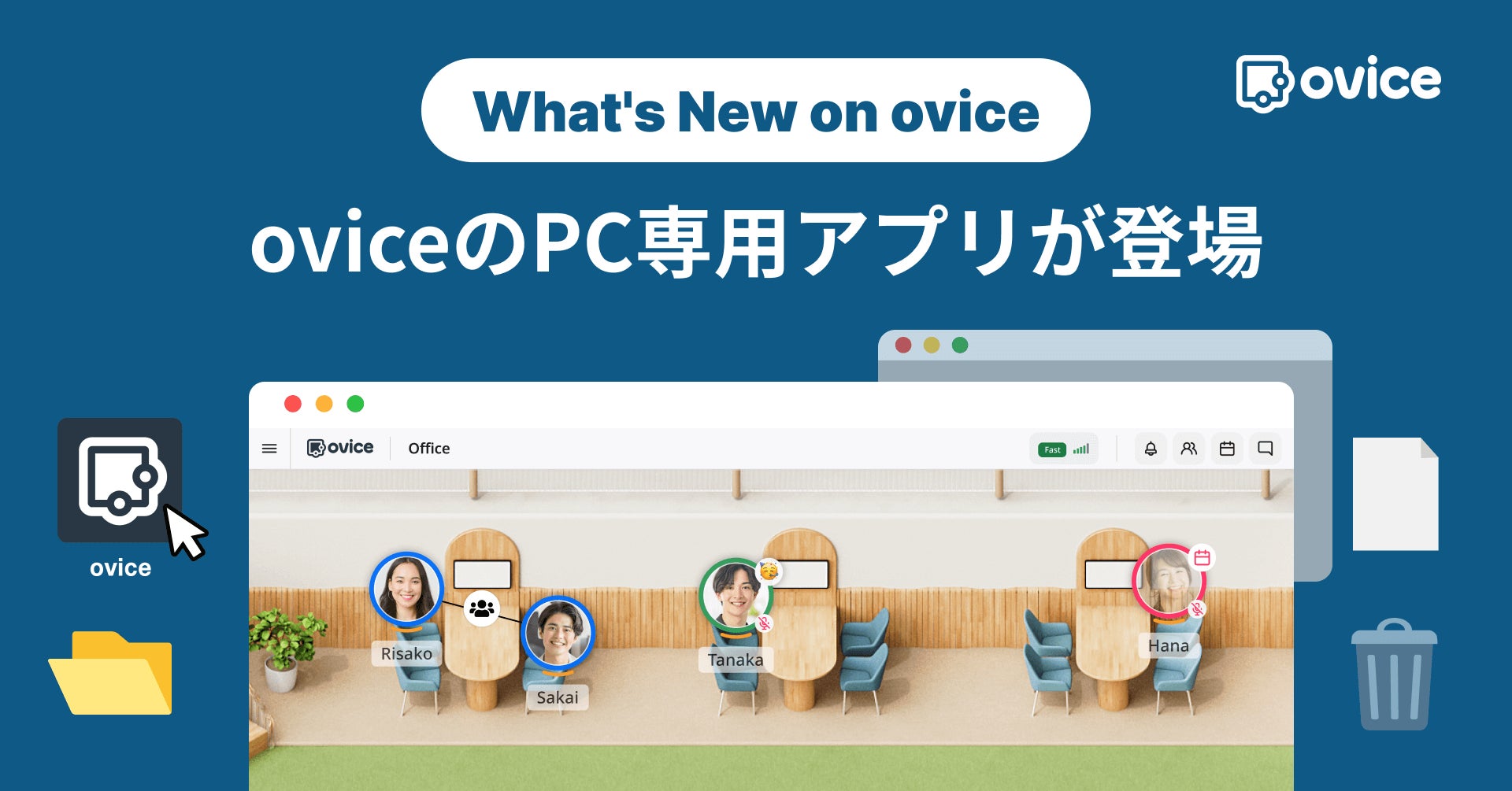 oVice株式会社(本社:石川県七尾市、代表取締役CEO:ジョン・セーヒョン)は、バーチャルオフィス「ovice(オヴィス)」のPC専用アプリ(以下、デスクトップアプリ)を公開したことをお知らせします。これまでのウェブブラウザ版と同様の機能を維持しながら、デスクトップアプリを利用することで、起動がよりスムーズになり、画面共有が高解像度化され、さらに、より安定した動作環境を実現します。