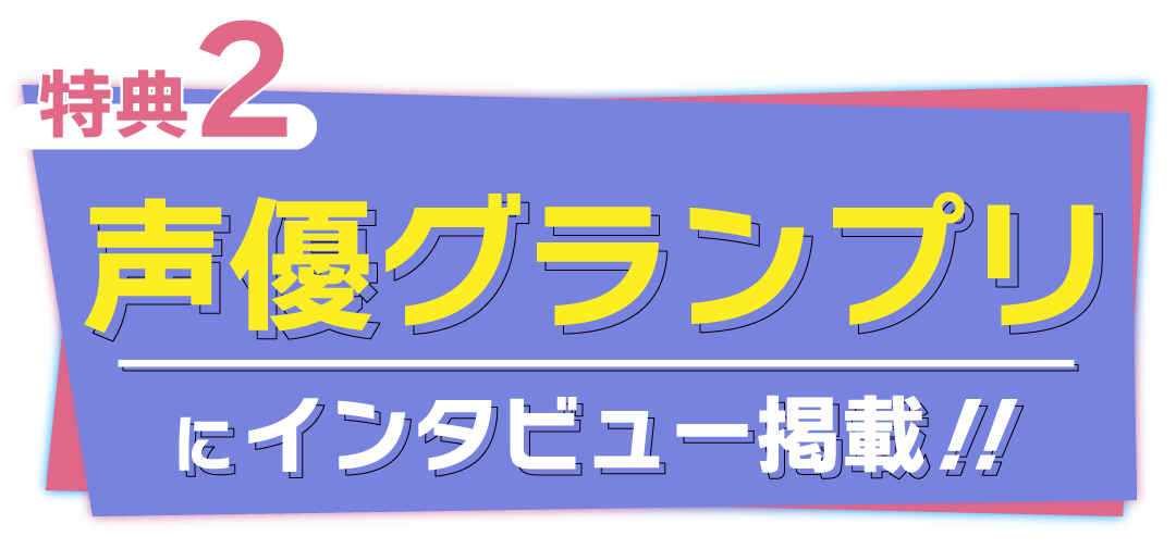 オーディション合格者3名には、地上波放送アニメでの声優デビューや声優雑誌「声優グランプリ」の特別インタビュー、ボイストレーニングなど、声優として活動いただくための豪華特典をご用意しております。