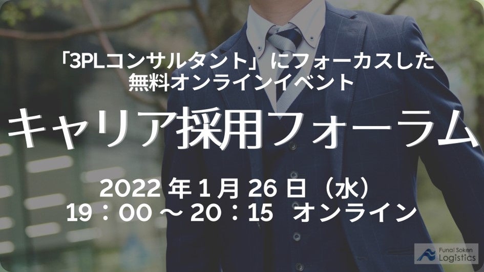 船井総研ロジ株式会社(本社:東京都千代田区、代表:菅重宏、以下「船井総研ロジ」)は、3PLソリューションコンサルタントの業務内容をくわしく紹介するイベント「船井総研ロジ 3PLソリューションコンサルタント キャリア採用セミナー』をオンラインで開催します。セミナーは、2022年1月26日(水)19:00~20:15に無料で開催します。
