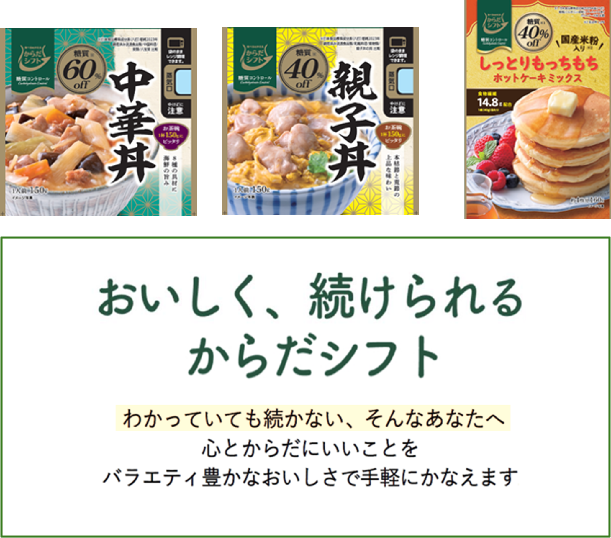 からだシフトなら、糖質オフなのにちゃんとおいしい、手軽だから無理なく続けられます。