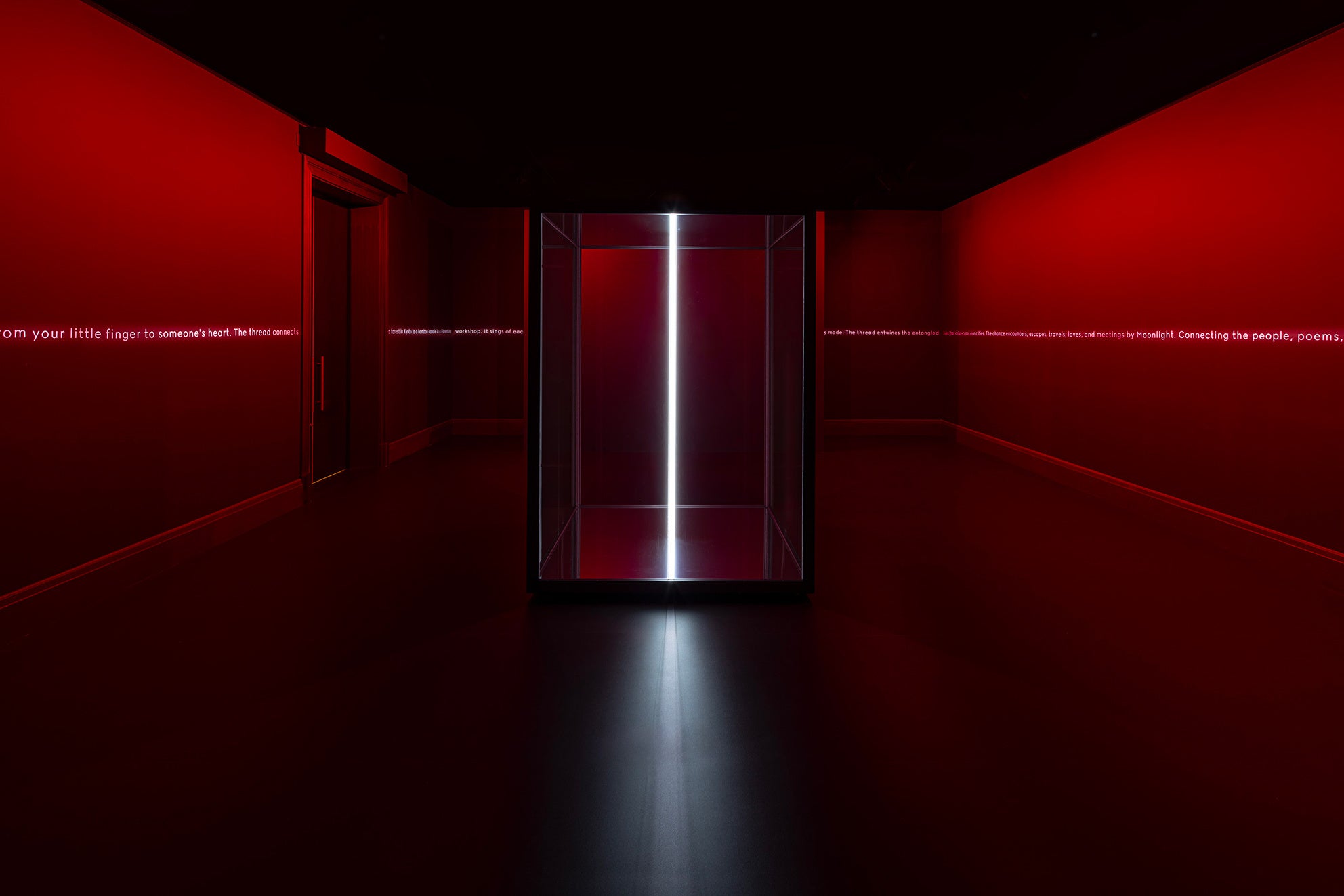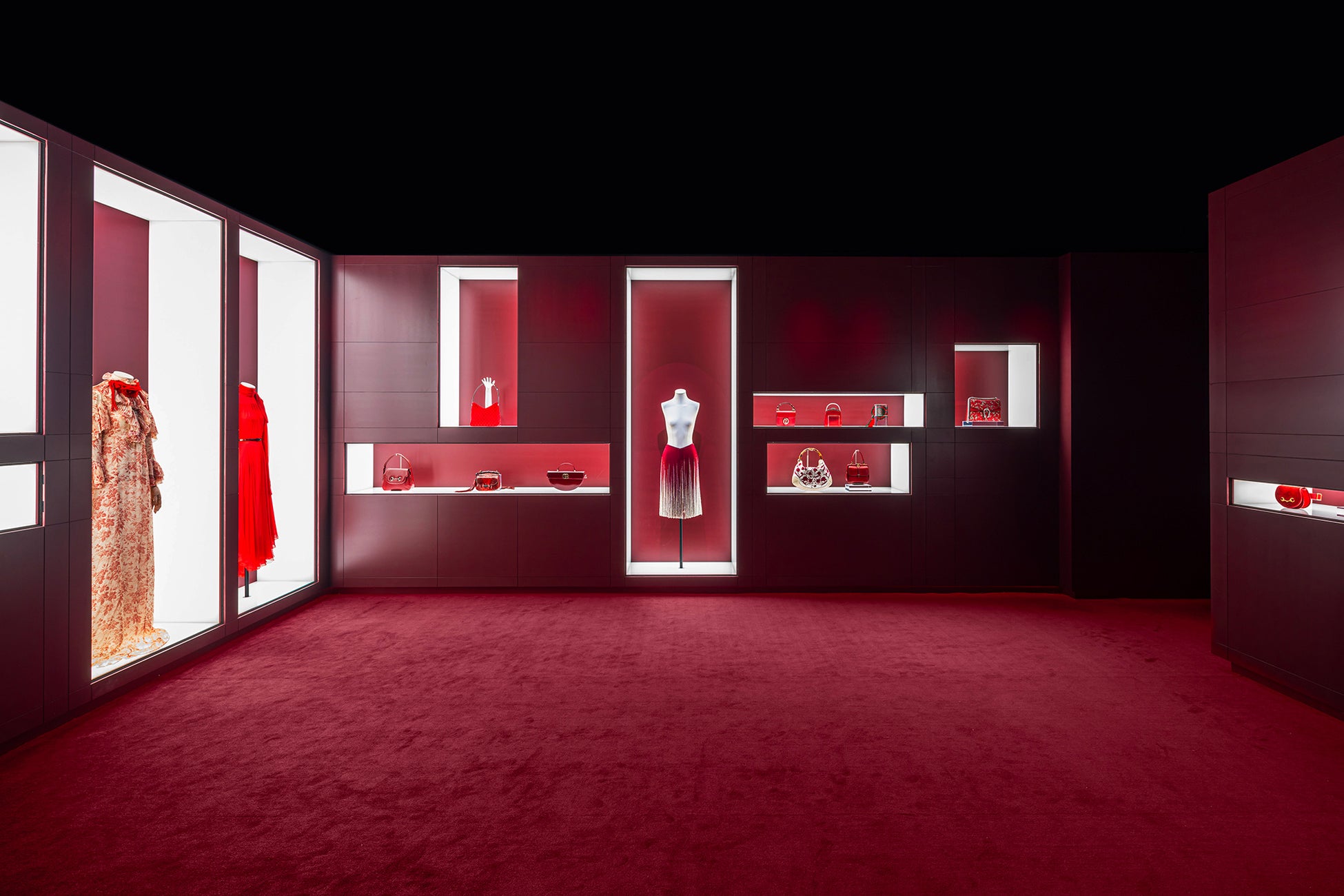 鮮やかなレッドで彩られたこの展示ルームは、誰もが人生に影響を与える運命の相手と目に見えない赤い糸で結ばれているという日本の「赤い糸」の伝承にインスピレーションを得ています。来場者はさまざまな表情のレッドで表現されたウェアやアクセサリー、オブジェを通じて、グッチの伝統を創り出してきた数々のエレメントが「赤い糸」によって結ばれていることを発見するでしょう。1999年秋冬 コレクションのパテントレザー ジャケットや、現在の〔グッチ ホースビット1955〕バッグと同じハードウェアを飾ったアーカイブ バッグなど、ここに集められた多種多様なアイテムは、自らのカラーを通じて内なる声を発し、グッチの歴史とのつながりを語っています。レッドはグッチの歴史を通して繰り返し登場してきたカラーであり、過去と現在をクリエイティブな表現でつなぐ“fil rouge(” 赤い糸)です。クリエイティブ・ディレクター サバト・デ・サルノは深みのある赤を「グッチ ロッソ アンコーラ」