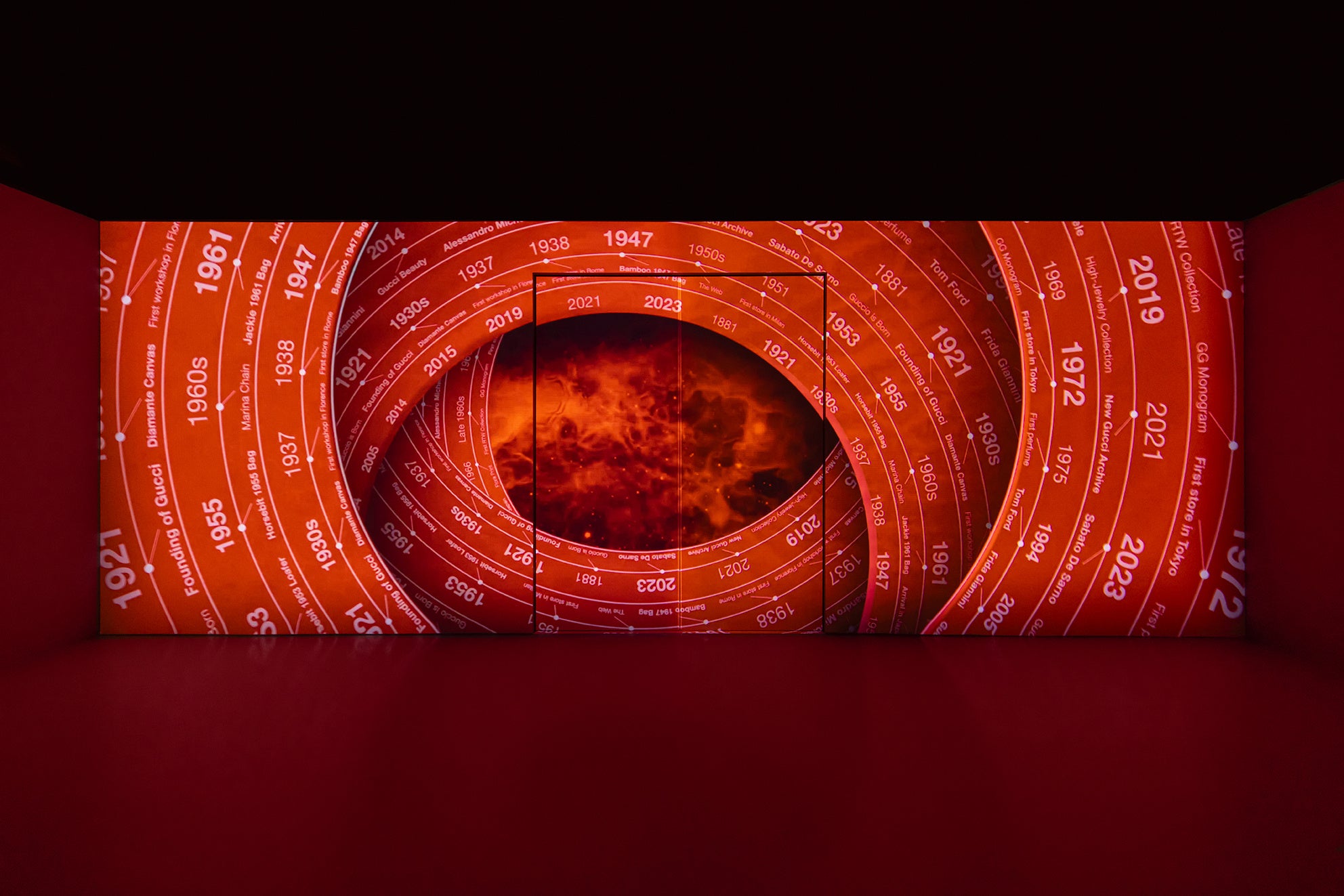 「私にとって、グッチの歴史を探求するこのプロジェクトは、毎回それぞれに独自の視点と新たな発見をもたらしてくれます。100年以上にわたりファッションをはじめとする視覚文化のアイコン的な先駆者であり続けたブランドの物語を、衣服、オブジェ、エレメント、人々、時代背景という実に多様なレンズを通して伝えるだけでなく、会場のスペースや開催する都市の雰囲気によって変化するエキシビションに取り組むことができるのですから。京都市京セラ美術館のような歴史と格式のある舞台で、新しい解釈やエレメントを加え、より豊かな体験へと再構築することは、とてもやりがいのある挑戦でした。Gucci Cosmosは、グッチの起源と未来を思い描くイマジネーションの力で絶えず革新されていくその歴史の物語を、イマーシブに体験するエキシビションです」