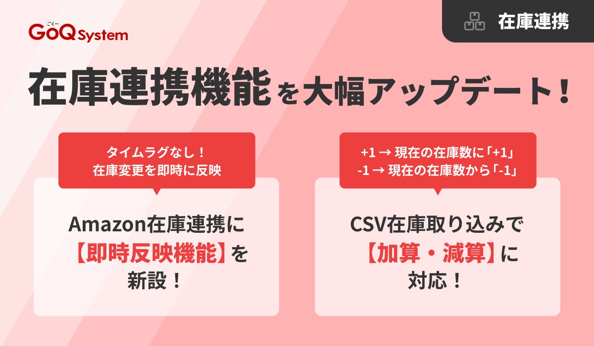 株式会社GoQSystem(本社:東京都中央区、代表:藤本 卓治)が開発・提供する、通販一元管理システム『GoQSystem』は、在庫連携機能の2つの大幅アップデートを実施いたします。