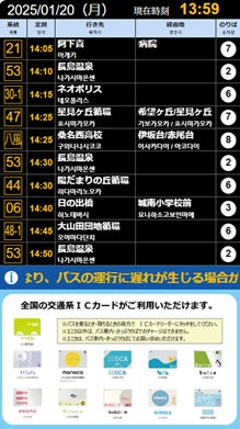 これにより、地域住民だけでなく、国内・訪日外国人旅行者もバスの利用が一目でわかりやすく、迷うことなく利用できるようにすることを目指しています。さらに、路線バスの行先や経由地、バスの現在位置、出発予定時刻がわかるようにすることで、渋滞や天候不順による遅延発生時のバス待ち環境の向上も期待されています。